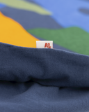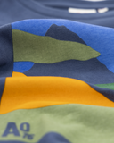 AO76 has always loved nature and mountains in particular. Every winter season you'll find at least one Art work print devoted to a beautiful landscape. So here it is. An extra cool one because of its bright happy colours that can realy light up your cold winter days. Basic c-neck model with long sleeves, 100% high quality RECYCLED cotton. Available in two different colour combos, which one do you prefer?