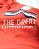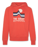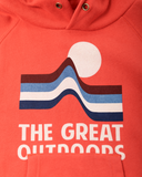 The great outdoors! What do they have in store for you? Some ocean waves, a beautiful sunset? What ever it is, with this cool Art work sweater you can enjoy it all. An oversized fit with some practical kangeroo pockets and a big hood. Always comfy on any adventure. Only available in this beautiful tomato red colour. Made out of 100 % high quality RECYCLED cotton.