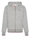 Another solid quality basic sweater, because that is what kids love. No big art work, just a practical soft grey hoodie you can wear on...euhm...everything! Can be worn as a sweater, but also as a jacket. So super handy and a piece not to be missed in a kids winter closet. Winter you say? Hell no! You can wear this full zip hoodie all year long. The 100 % high quality RECYCLED cotton will be the reason for that. Top quality garanteed.