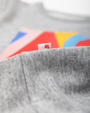 The Bauhaus period was a good inspiration for our stylists. So they pimped our AO76 logo in the same style as the bauhaus posters of that time; very graphical and colourful with a cool playful sweater as result. A basic c-neck made out of 100% RECYCLED cotton. A cool piece to wear!