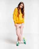 Be cool and hip! This hoodie is the ultimate favourite piece of our classic winter collection. A great big hood, loose fit so you can wear it nice and comfy and big front kangaroo pockets to hide all your stuff in. And just a small logo on the chest which gives away your favourite brand. Nothing more nothing less. Plus made of 100% high quality RECYCLED cotton. A must have in the closet! Available in two new happy bright colors marigold & turquise. Which do you prefer?