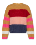We call her 'Claire', one of our personal favourites of the winter collection. A warm c-neck knitwear sweater, short and wide, striped in different fun colors, very easy to wear. Cool on some high waist pants, very junior minded. An unique composition of yarns especially created by our in house stylists for extra comfort and quality. Limited edition!