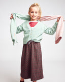 A solid v-neck cardigan can't be missed in a winter collection, so here it is! Made in two beautiful soft colors mind green and dusty pink. A loose comfy fit, shorter than your basic cardigan so perfect to wear on a dress or high waist pants. 100% polyester so doesn’t shrink or loose color when washed, therefor sustainable, plus it can easily be recycled afterwards. A must have in a winter closet.