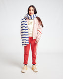 An AO76 classic always included in our collections because of our sporty roots. Two side pockets, stitched lines running over the front all the way down, and the signature colored striped lines at the sides. A cool and comfy sweat pants, not to be missed in the closet ! Next to our classic grey, also available in a special new collection color ’tomato red’. A slim fit for great mobility while doing sports or just hanging around the house. 100% high quality RECYCLED cotton.