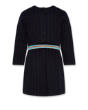 We call her 'Freya'. A great dress with such a simple fit that it looks very classic and pure, therefore so easy to wear and pimp for every occassion. Family diner with a short knitted cardigan, for school with a polar fleece jacket, to go to a party with a cool art work sweater on top. You name is! It's also super comfy with its elastic colored waist band and has a good practical lenght. Sleeves fall on the wristbones so a bit shorter than full lenght, and the back has some buttons for extra detailing. Combination of polyester, spandex and high quality cotton. Available in two prints; a checkered one and a striped one, just as we are used to at AO76.