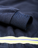 This is such a cool NEW MODEL in our winter collection! A basic dress with a high sporty and junior level. A good lenght to go outside, a hoodie to be cool and a loose fit to be comfy. The ideal dress to wear all winter long for every occasion. Available in two easy combinable basic colors 'navy blue' and 'light grey'. But it wouldn't be a great AO76 dress if there were no little shiny sparkles present...Yes please ! Be sporty and glamorous at the same time !