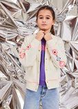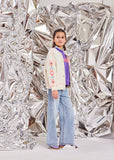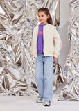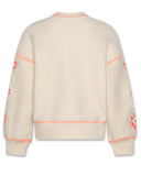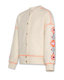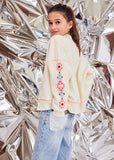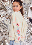 Super original piece with printed sleeves: looks like a cardi but really is a sweater