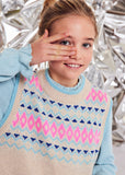 This sleeveless jacquard knit will be your favorite winter fit