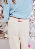 Cool, flared sweaterpants with orange stitching …you'll wear them anywhere!