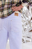 Long, loose and and baggy, these corduroy flares in this pale shade are toppy