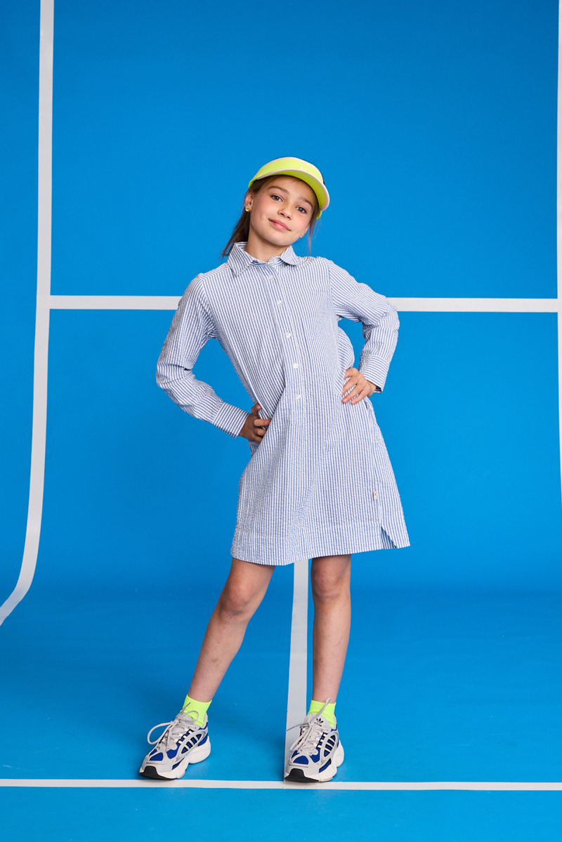 A relaxed striped shirt dress with a sporty twist. Light, comfortable and easy to move in, made for sunny days that flow from play to pause without missing a beat.