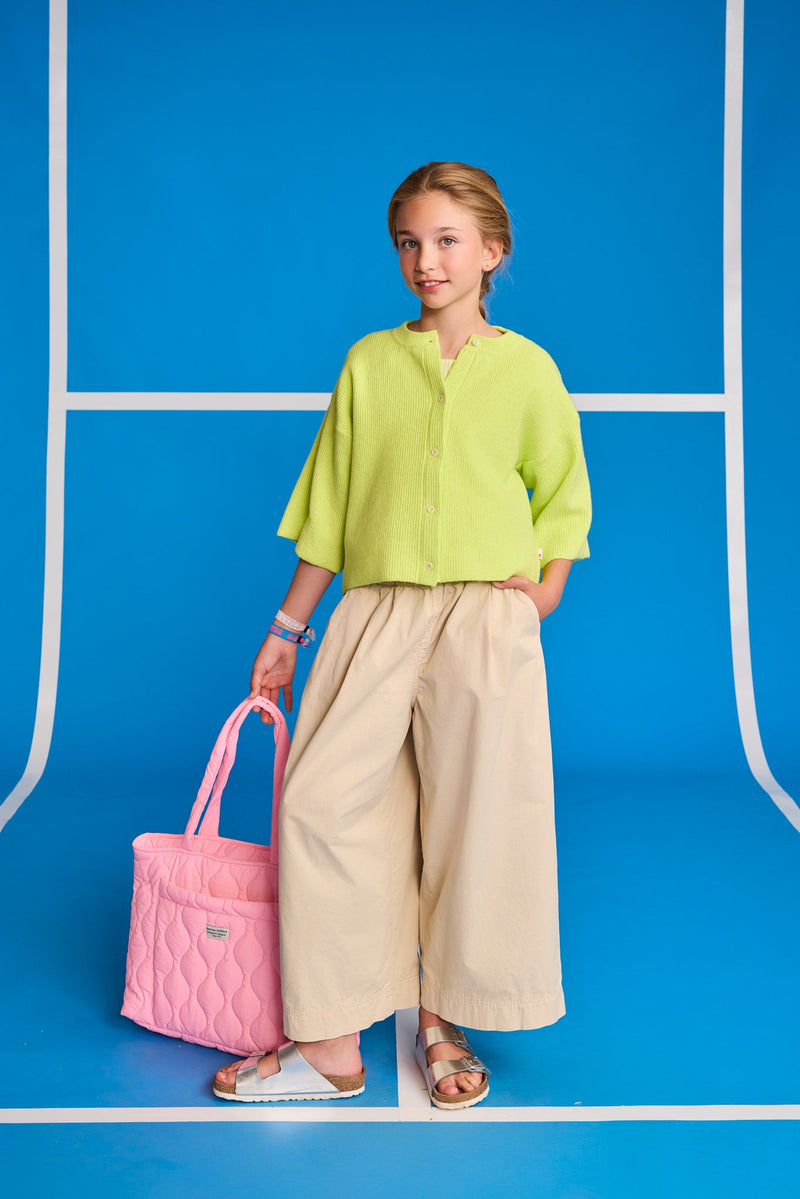 A soft knitted piece in a fresh green shade, paired with wide, flowing trousers for an easy silhouette. Comfortable and relaxed, with a gentle structure that keeps the look light, playful and perfectly balanced.
