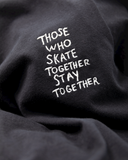 Can you feel the love? 'Those who skate together, stay together'. Typical AO76 to create such a playful and loving quote. And in such a cool handwritten fond. We absolutely love it! Can be worn casual chic, because of the small text size and placement on the chest. Available in two colour combos and made out of 100 % high quality RECYCLED cotton. A must have for every sporty kid.
